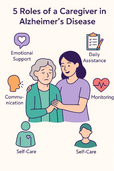 🩺 เฝ้าระวังอาการทางกายและอารมณ์ เช่น การหลงทาง หงุดหงิด หรือการเปลี่ยนพฤติกรรม เพื่อรายงานแพทย์อย่างเหมาะสม