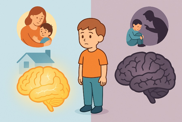 ในทางตรงกันข้าม เด็กที่ขาดการดูแลที่เหมาะสม เช่น ขาดการสัมผัสทางอารมณ์ ขาดความปลอดภัย หรือเผชิญกับความรุนแรง อาจมีการพัฒนาโครงสร้างสมองที่ผิดปกติ เช่น สมองบางส่วนเล็กลง หรือระบบประสาททำงานผิดจังหวะ ซึ่งความเปลี่ยนแปลงเหล่านี้อาจไม่ปรากฏทันที แต่ส่งผลสะสมไปจนถึงวัยผู้ใหญ่และวัยสูงอายุ